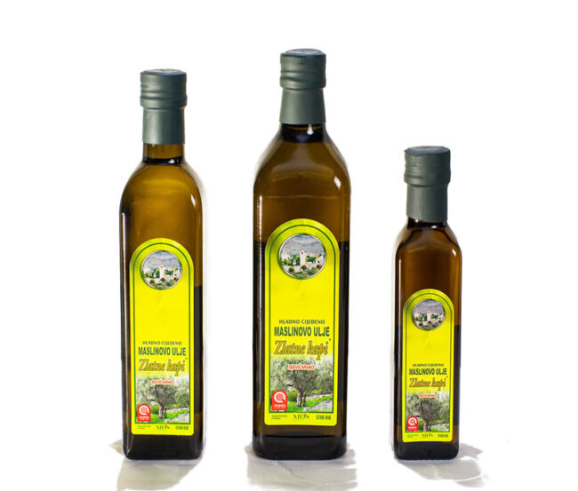 Zlatne kapi djevičansko maslinovo ulje proizvedeno je od zdravih plodova masline, kontrolisanim sistemom prerade uz implementiran HACCP sistem, gdje temperatura prilikom izdvajanja ulja iz masline ne prelazi 26°C.