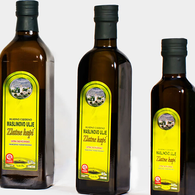 Zlatne kapi extra djevičansko maslinovo ulje je proizvod barskog porijekla dobijen od autohtone sorte masline “Barska žutica”.Pažljivim i selektivnim odabirom maslinovog ploda,pravovremenom berbom i preradom samog ploda, koristeći najsavremenije postupke u preradi uz primjenu HACCP sistema, dobijamo ulje koje se svojim visokim kvalitetom koristi kao hrana i lijek te postaje nezaobilazan dodatak u ishrani.